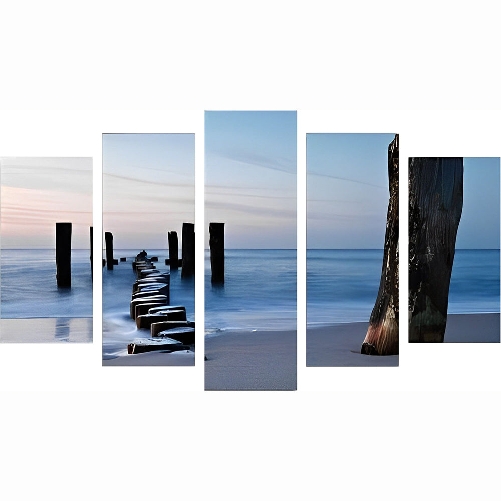 Verweerde Paal en Zee in Zachte Kleuren 5 Platen Diamond Painting