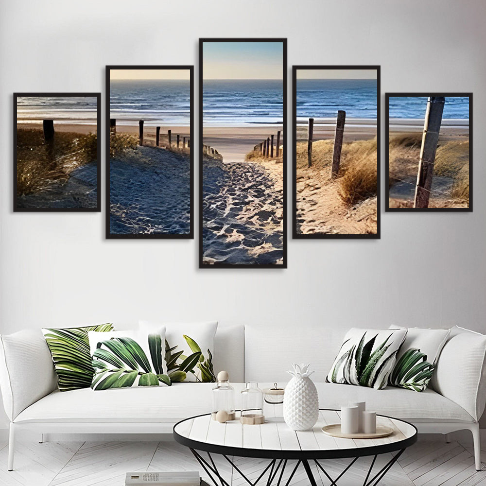 Zandweg Met Houten Paaltjes en Zee in Verte 5 Platen Diamond Painting