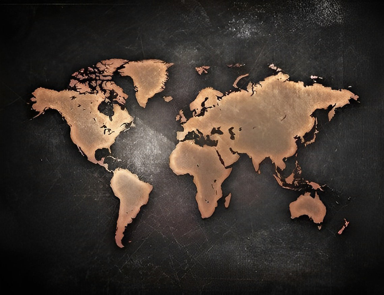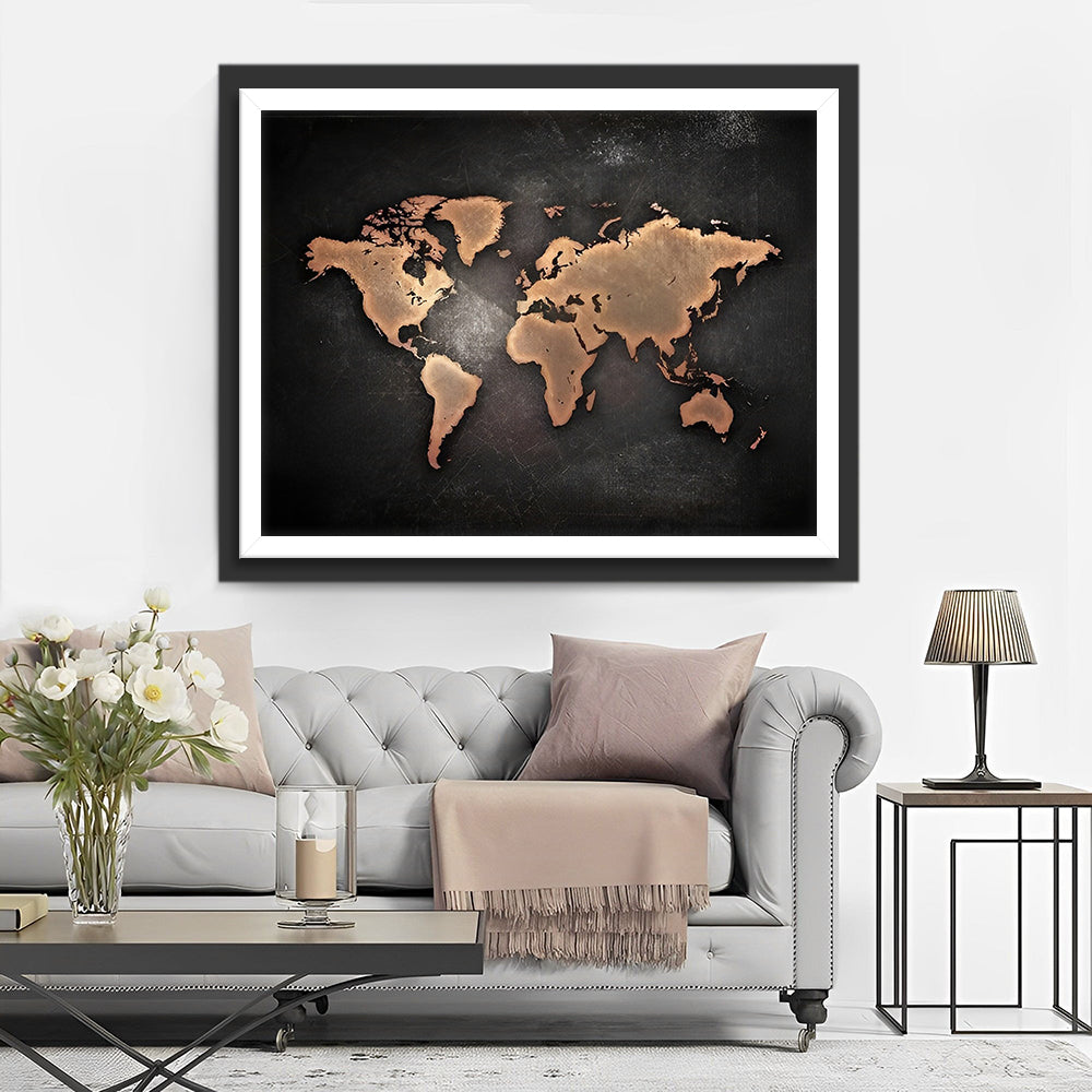 Metalen Wereldkaart op Donkere Achtergrond Diamond Painting