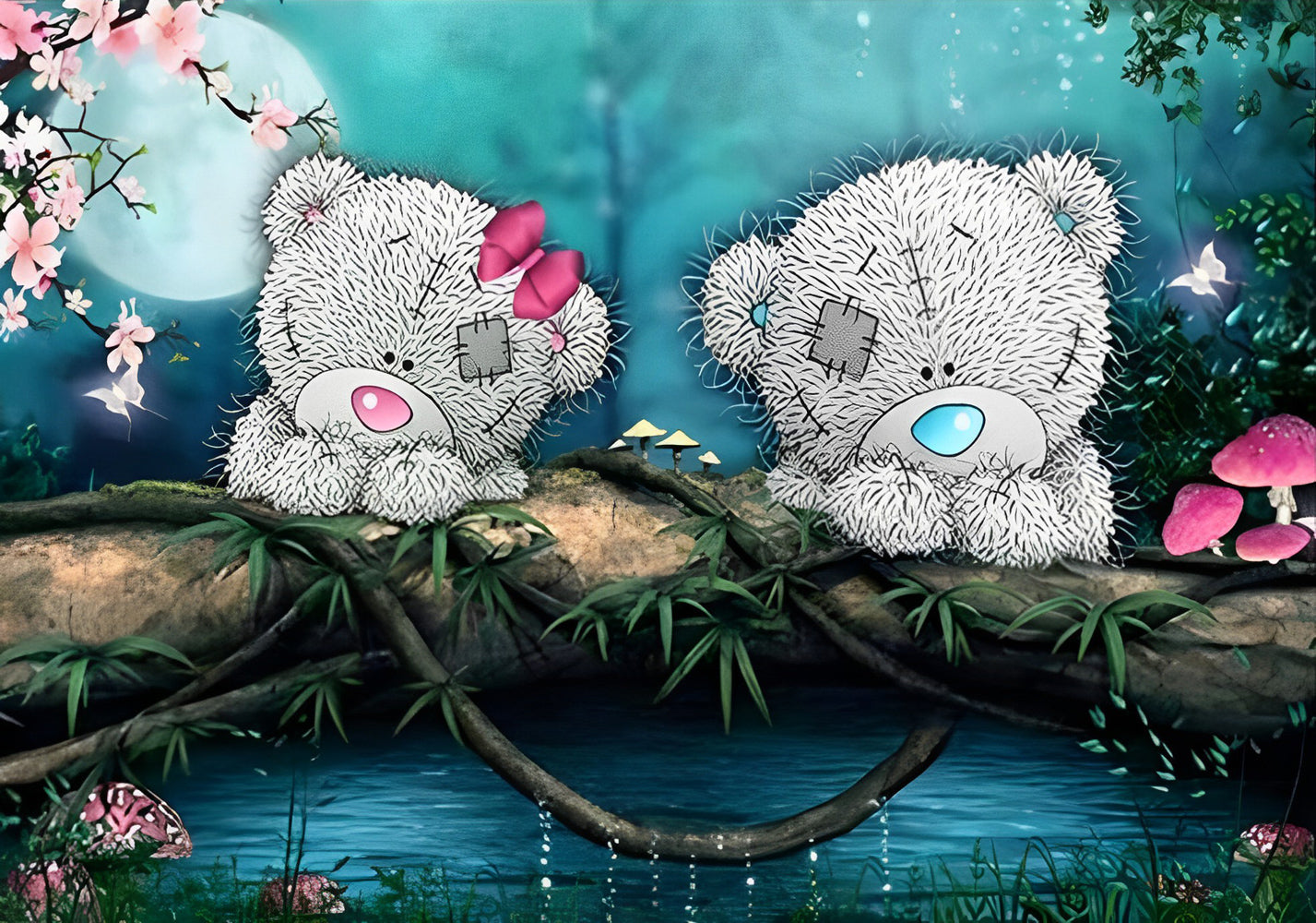 Twee Gewonde Poppenberen in een Boom Diamond Painting