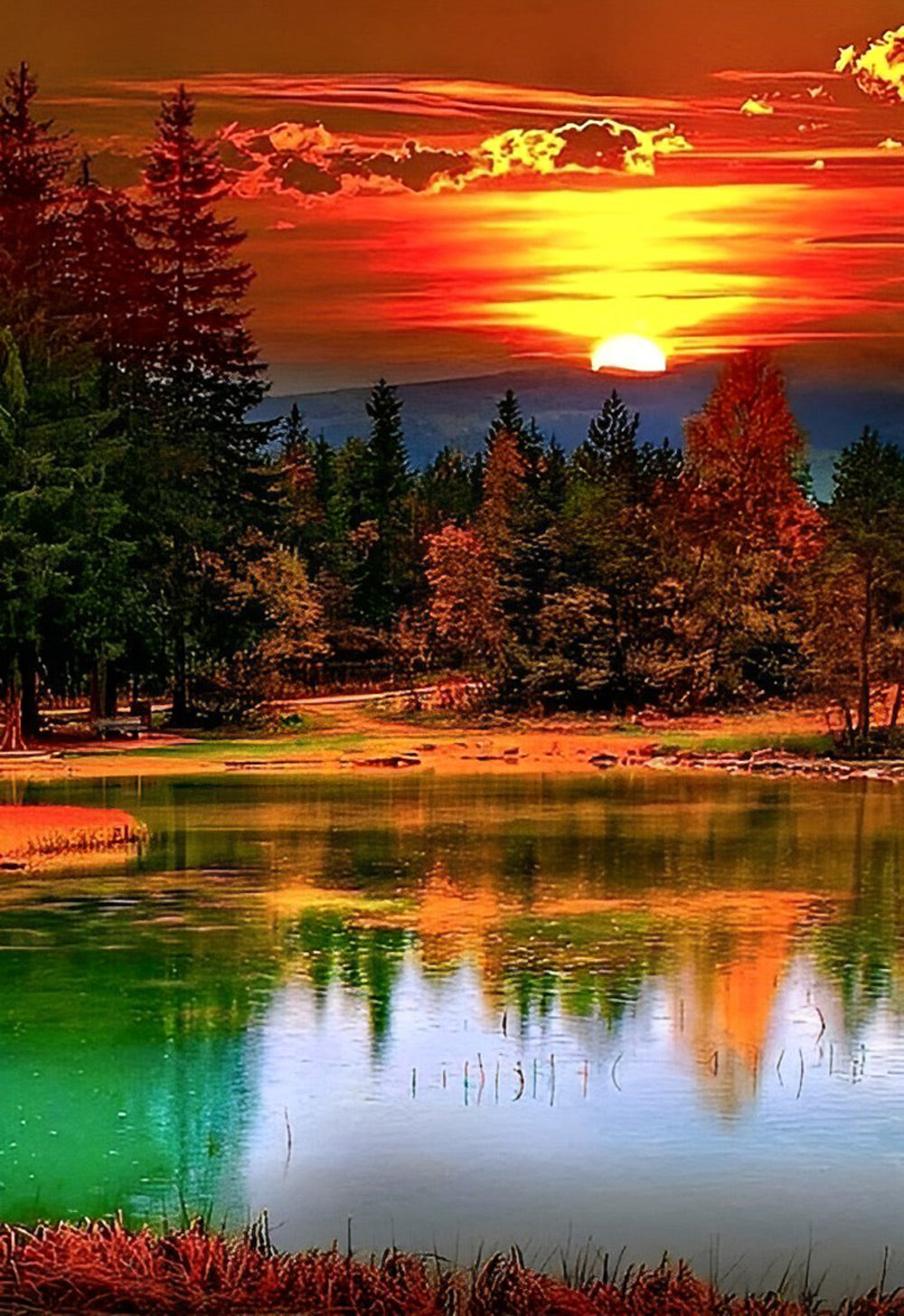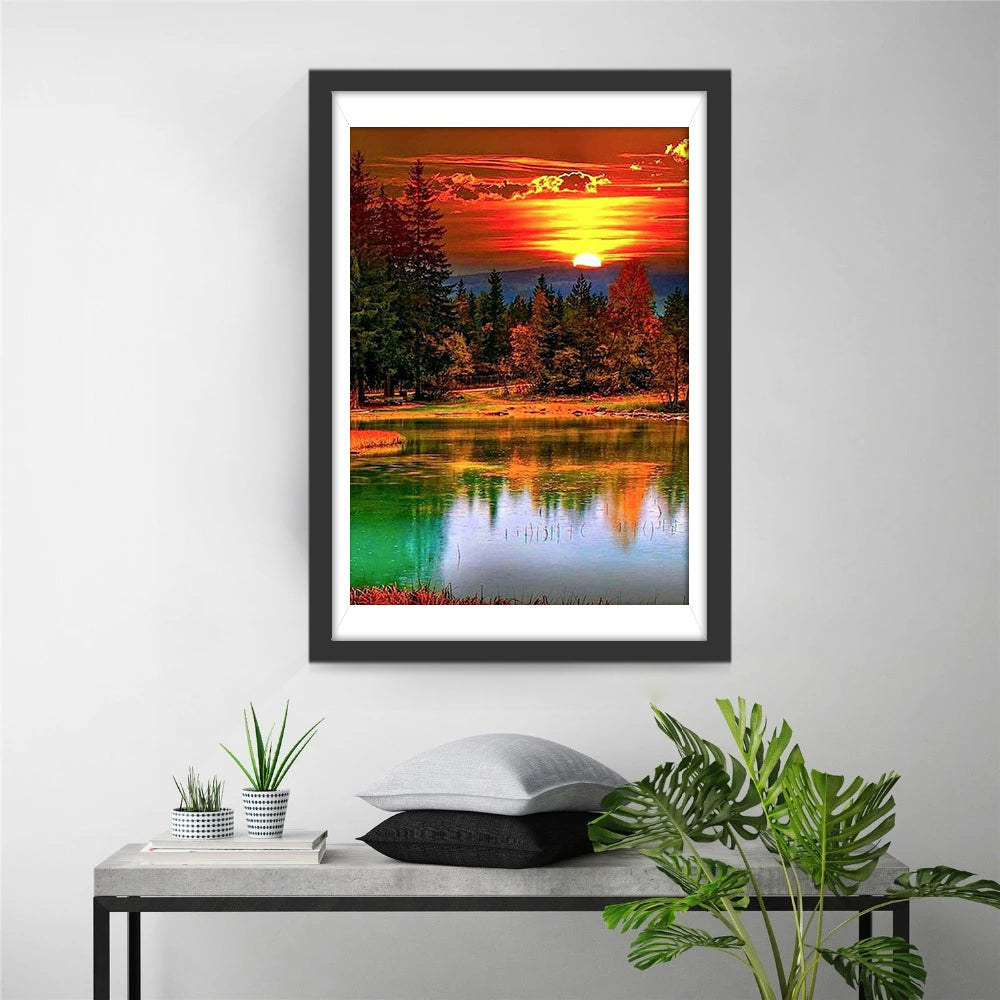 Het Kalme Meergezicht met de Kleurrijke Hemel Diamond Painting
