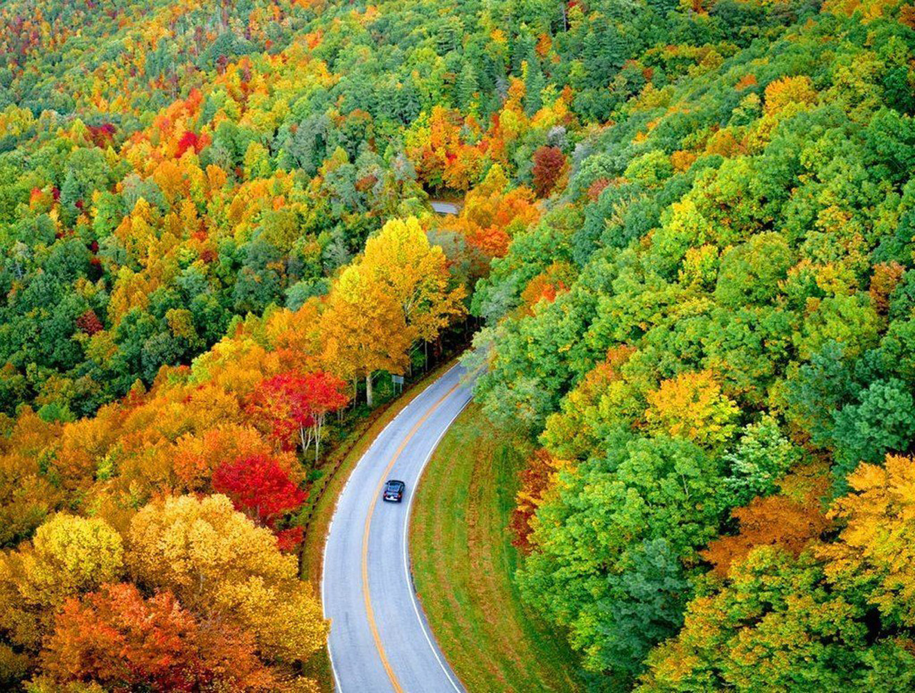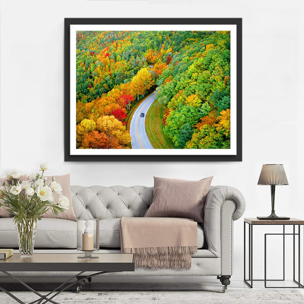 Prachtige Herfstreis Langs de Bochtige Weg door het Woud Diamond Painting