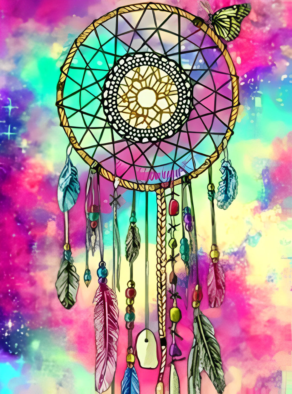 Kleurrijke Dromenvanger met Vlinder in Waterverfachtergrond Diamond Painting