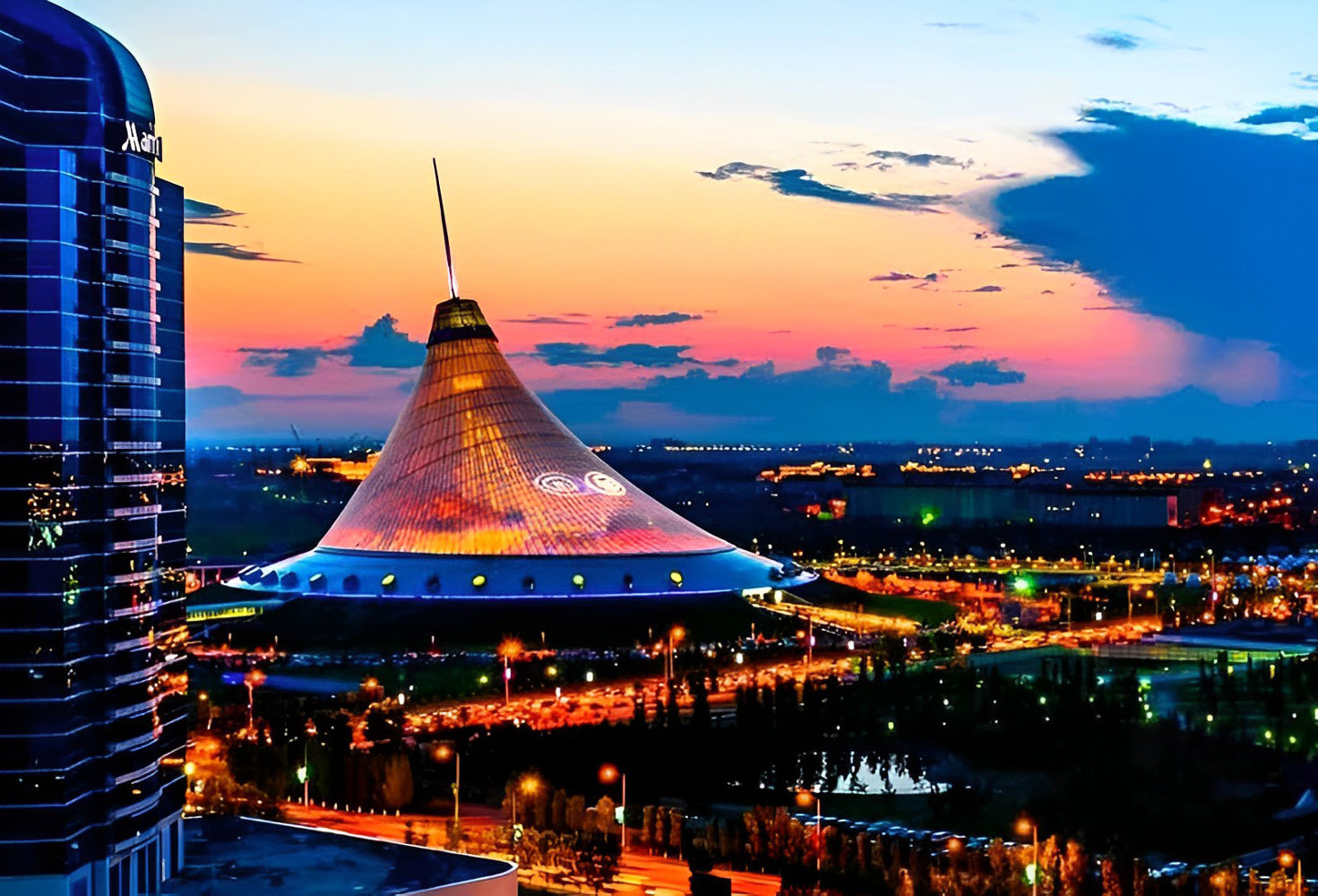Romantisch Gezicht op Het Kazachse Bouwwerk tegen Zonsondergang Diamond Painting