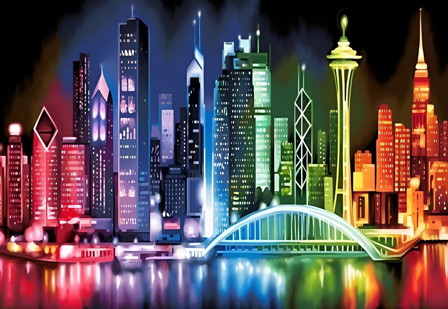 Levendige en Betoverende Nachtstemming van de Metropool Diamond Painting