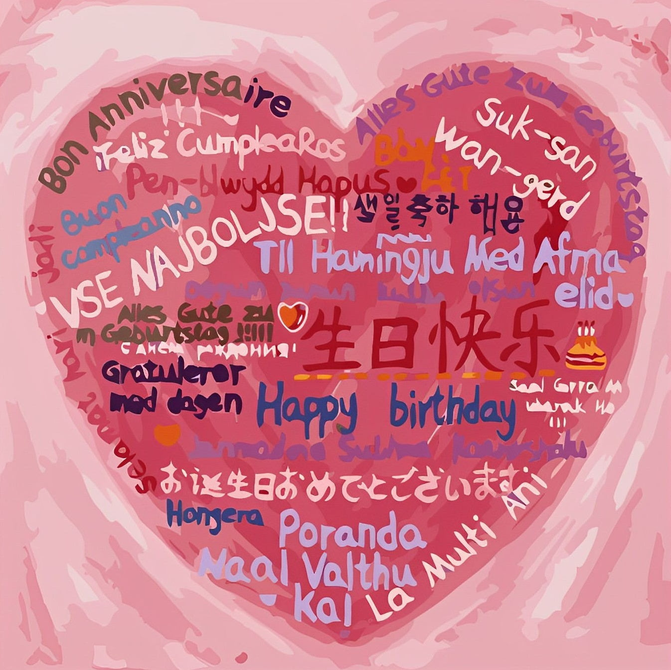 Een Roze Hartje en Vele Wensen Diamond Painting