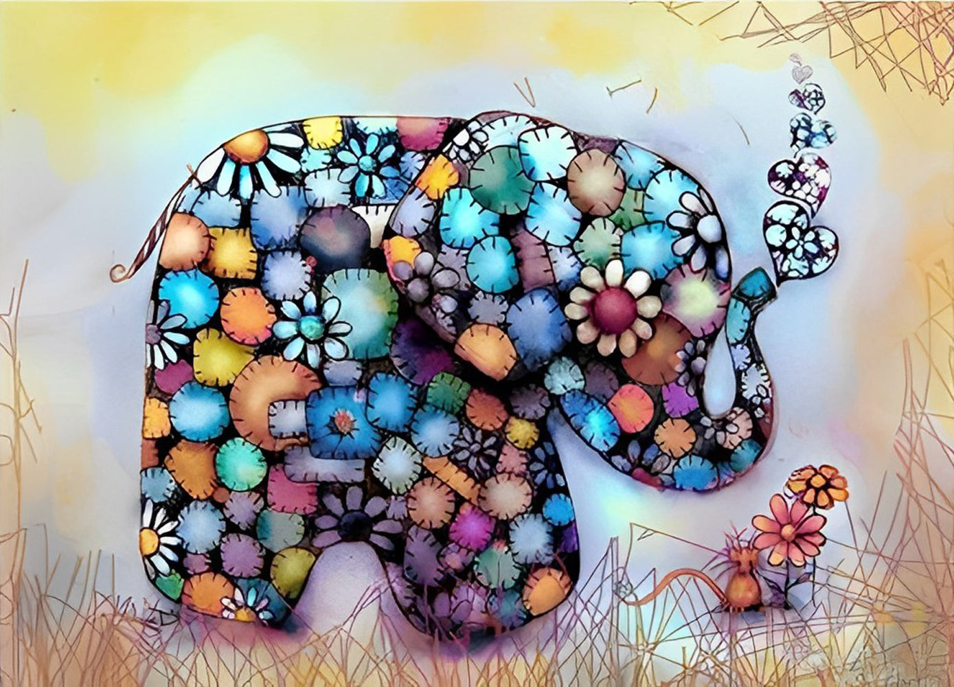 Olifant Gemaakt van Bloemen Diamond Painting
