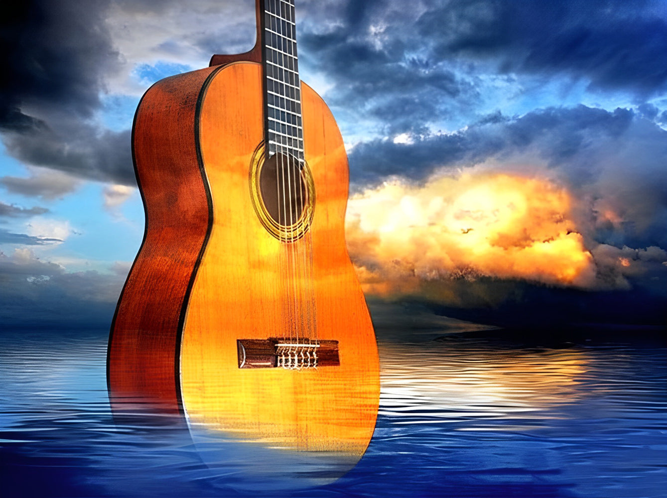 De Gitaar van Stilte in de Gloed van Wolken Diamond Painting