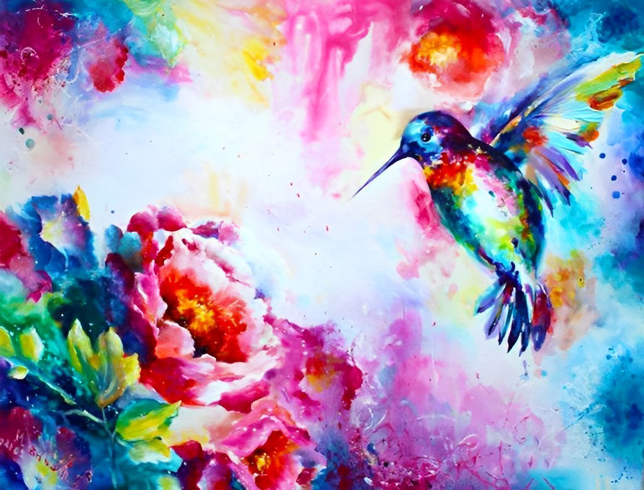 Bloemen en Kolibries op een Kleurrijke Achtergrond Diamond Painting