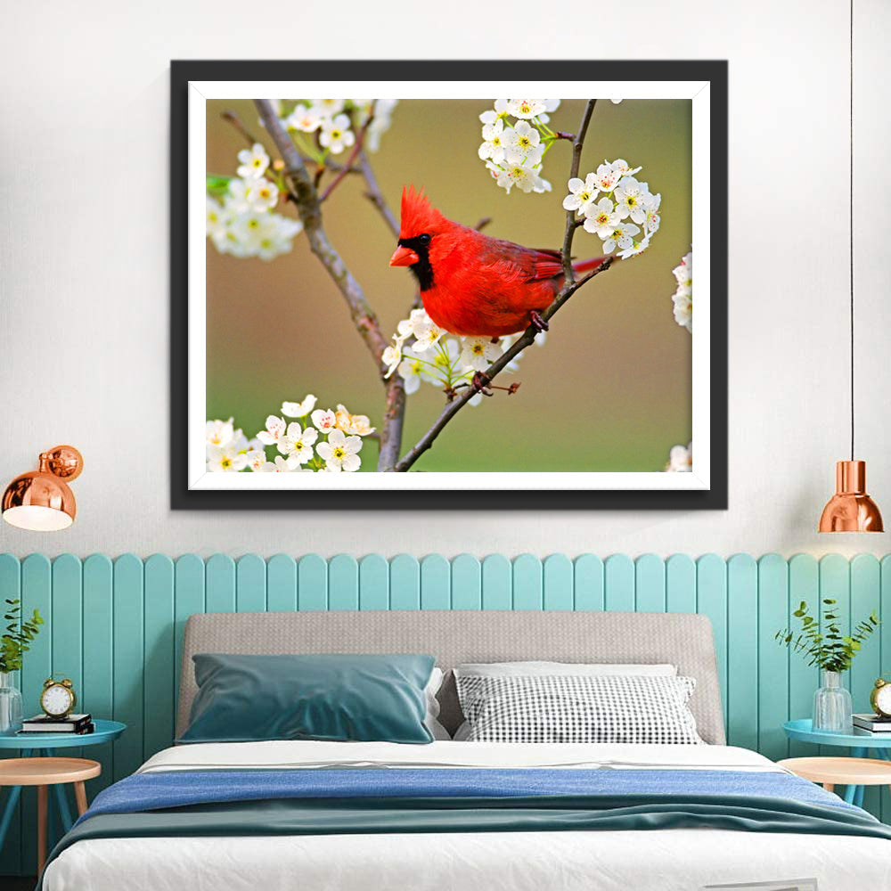 Noord-Amerikaanse Kardinaal in een Perenboom Diamond Painting