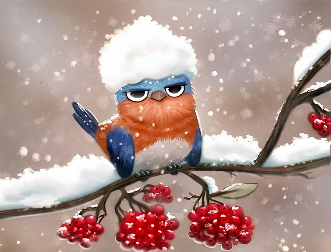 Kolibrie met een Sneeuwwitte Kop op een Vruchtdragende Tak Diamond Painting