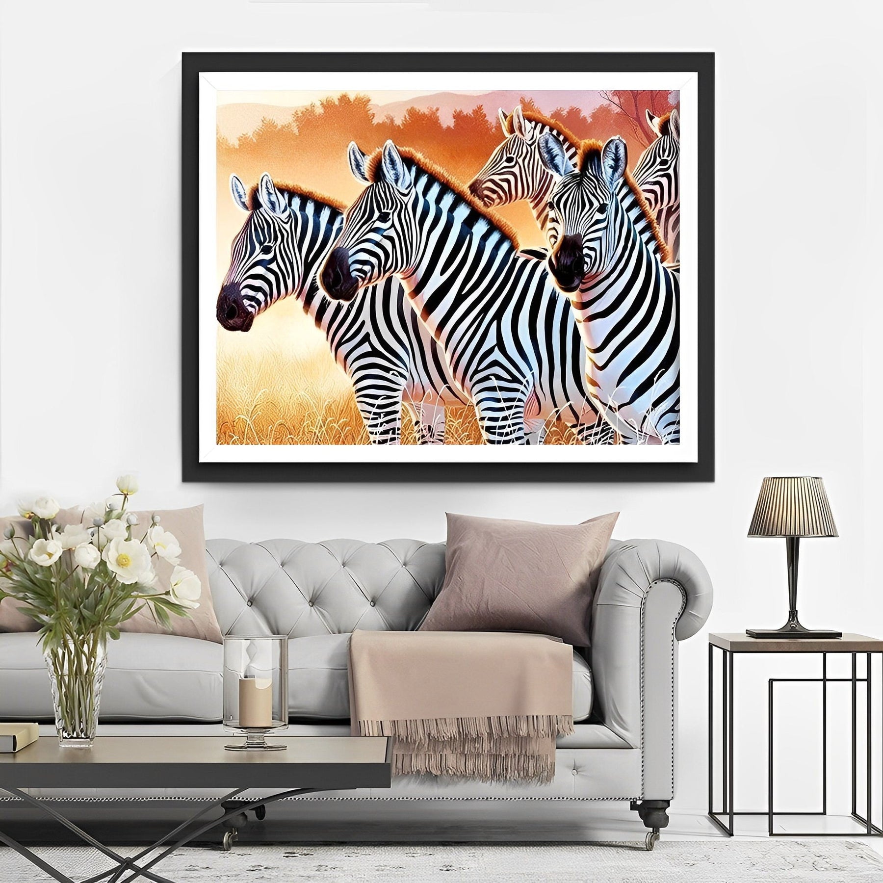 Een Paar Zebra's op een Weide in de Herfst Diamond Painting