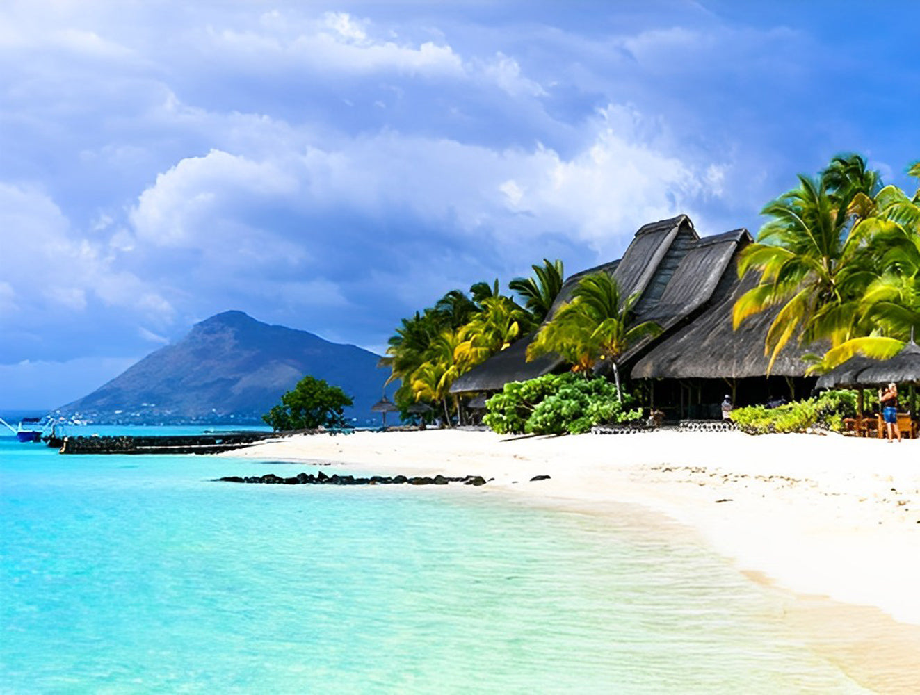 Witte Zandstrand met Palmbomen en Golfslag Diamond Painting