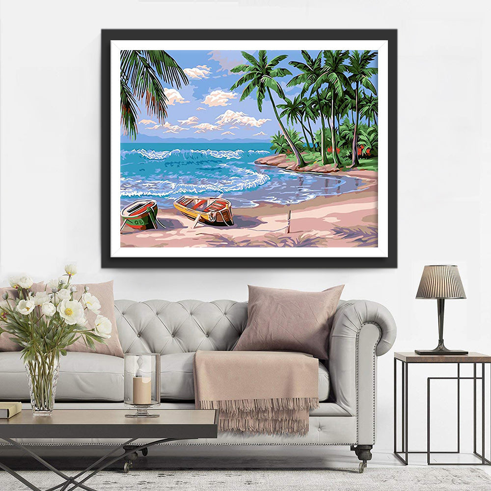 Golfen, Palmen en Kleine Booten Diamond Painting