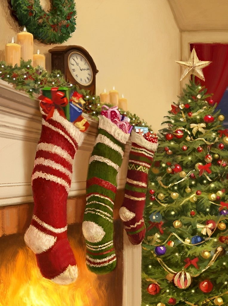 Kerstkousen aan de Schoorsteen Diamond Painting