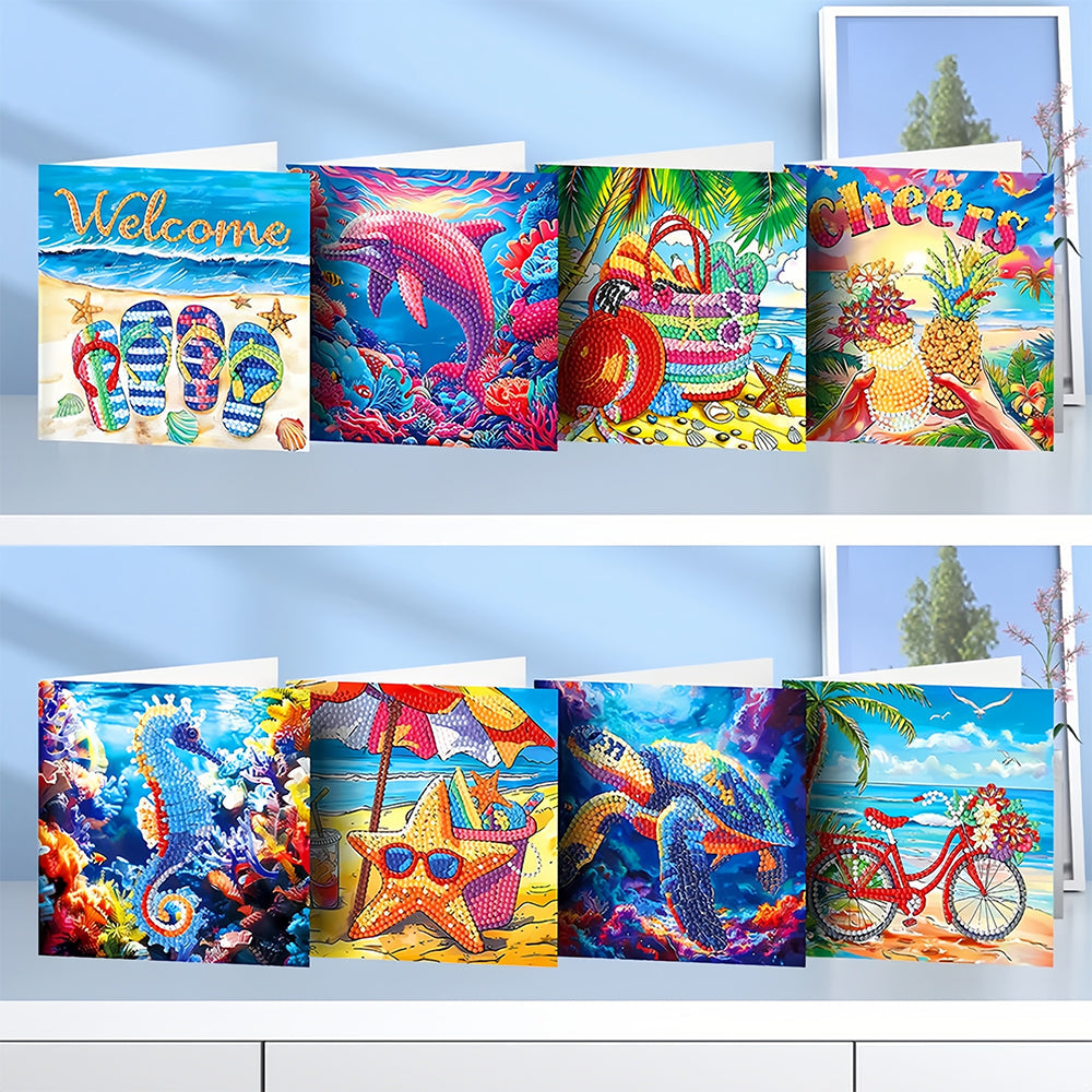 Zomer Vakantie aan Zee Wenskaarten | 8 Stuks