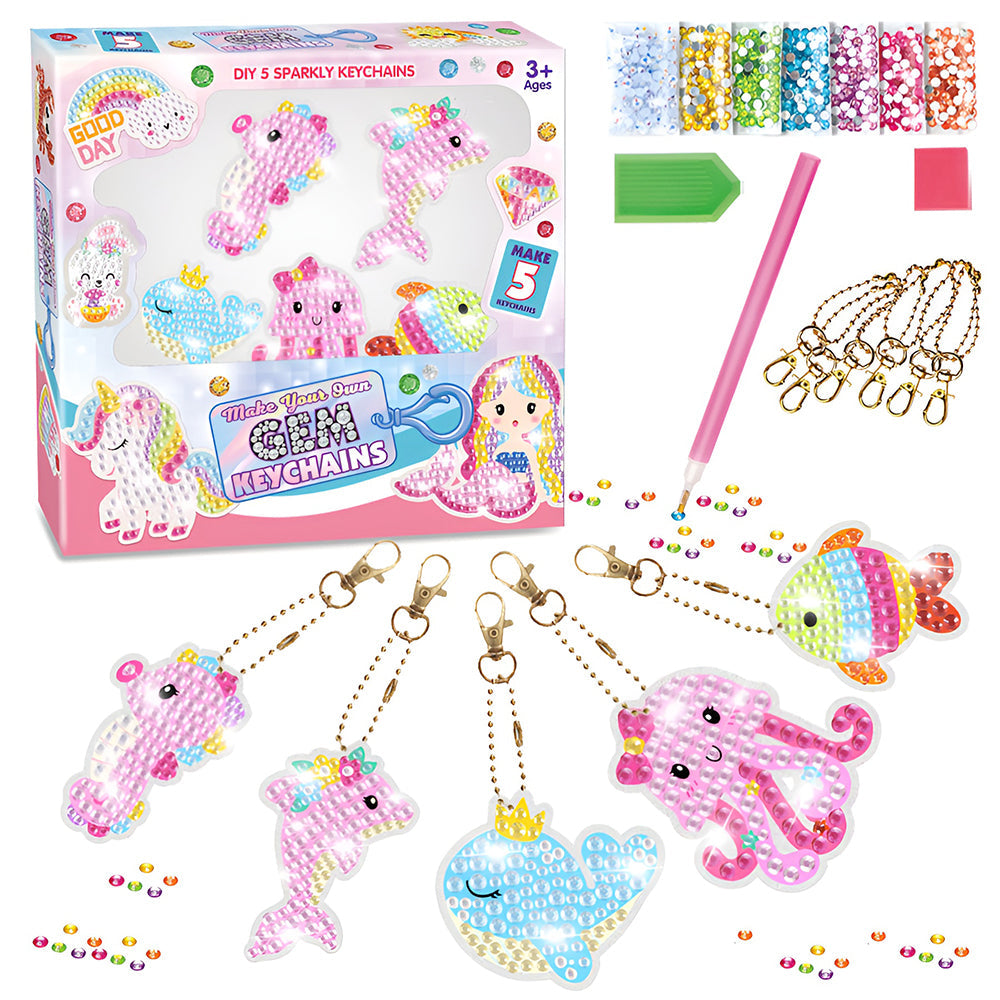 5 Stuks Roze Zeedieren Acryl Een Zijde Sleutelhanger Diamond Painting