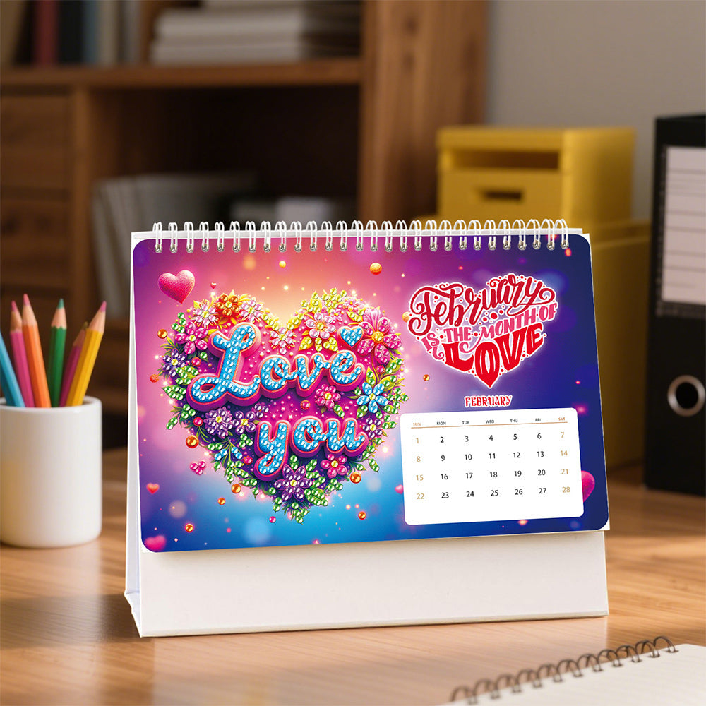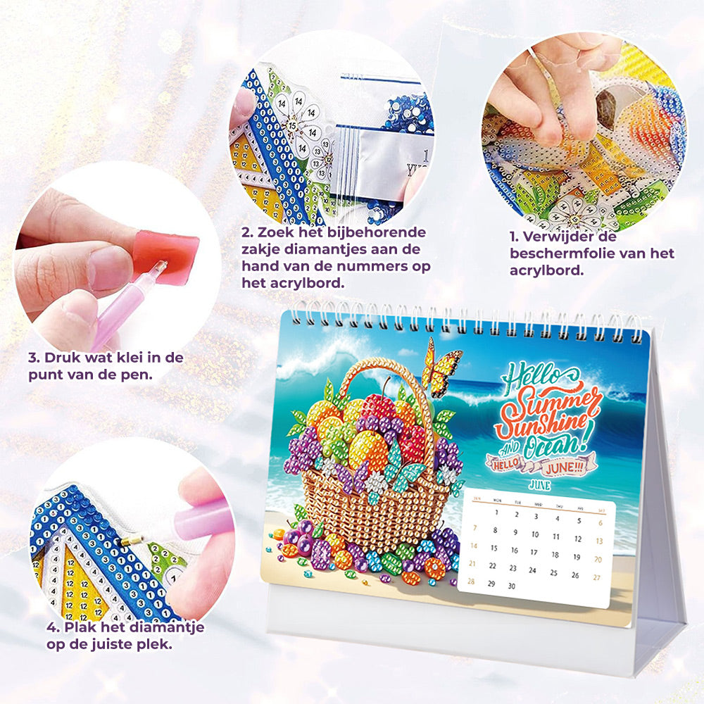 2026 Bureaukalender Diamond Painting | Een Levendig Landschap en Dieren