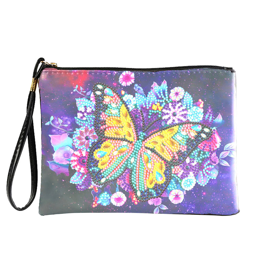 Vlinder en Paarse Bloemen Diamond Painting Polstas