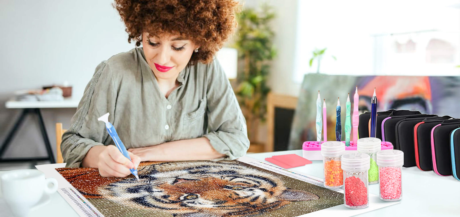 Diamond Painting, ook wel bekend als diamant borduurwerk of diamant kunst, is een creatieve en ontspannende hobby. Plak kleine diamanten van hars op een canvas dat vooraf is bedrukt met symboolversieringen. Deze symbolen komen overeen met specifieke kleuren, waardoor stap voor stap een sprankelend kunstwerk ontstaat. Je kunt het zien als een combinatie van borduren en schilderen op nummer, maar dan met glinsterende steentjes.